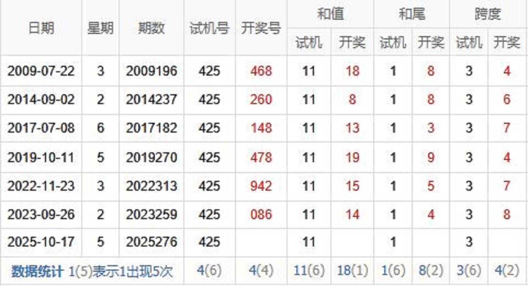 2011276期 试机号 279 开奖号 509 和 14