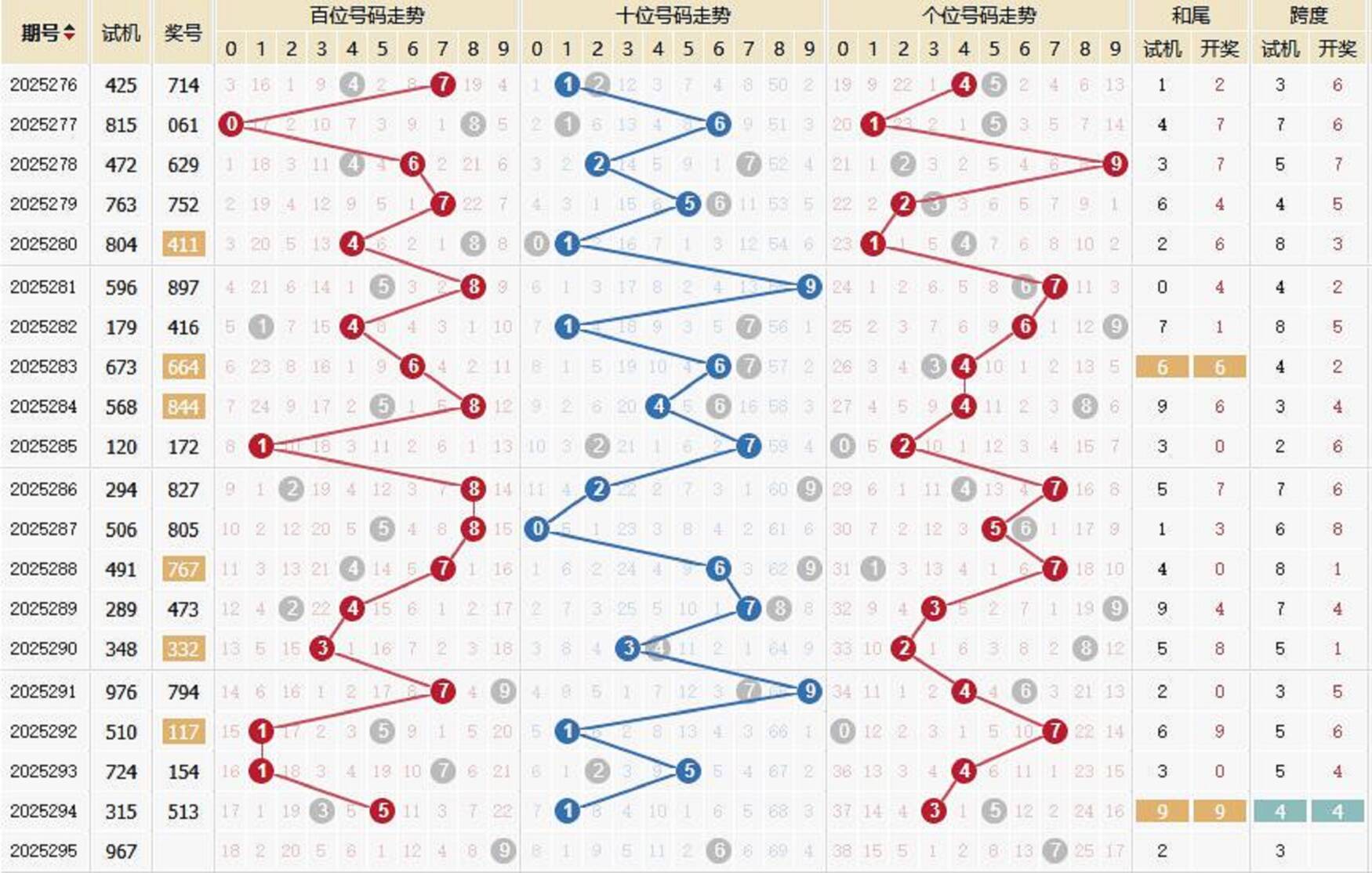 2025295期福彩3D 试 机 号 967 上期开奖号:513 1818部落 关注码:128 金码:1 对应码:025 295试机号形态 试机号:967 和尾:2 跨度:3 大小比:3:0 奇偶比:2:1 试机号走势图 金码历史统计 期数 试机号 关注码 金码 对应码 开奖号 出号 295 967 128 1 025 294 315 647 6 572 513 3 293 724 985 5 388 154 1 292 510 783 8 062 117 1 291 976 325 2 889 794 2 290 348 637 6 306 332 1 289 289 407 7 959 473 0 288 491 678 6 264 767 0 287 506 492 2 014 805 2 286 294 873 3 918 827 1 285 120 607 0 825 172 2 284 568 462 6 138 844 1 283 673 943 3 929 664 1 282 179 597 9 808 416 1 281 596 415 1 500 897 1 280 804 352 5 717 411 1 279 763 561 6 241 752 1 278 472 650 0 616 629 1 277 815 947 4 563 061 1 276 425 931 9 929 714 1 275 183 923 2 874 203 1 历史出现情况统计 295历史开奖号 2002295期 试机号 451 开奖号 967 和 22 295期牛小妹推荐 独胆:5 双胆:15 三胆:125 杀码:34 六码:012569 百位:56 十位:19 个位:02 直组精选: 510 512 590 592 610 612 690 692 单挑:512 更多精选内容: