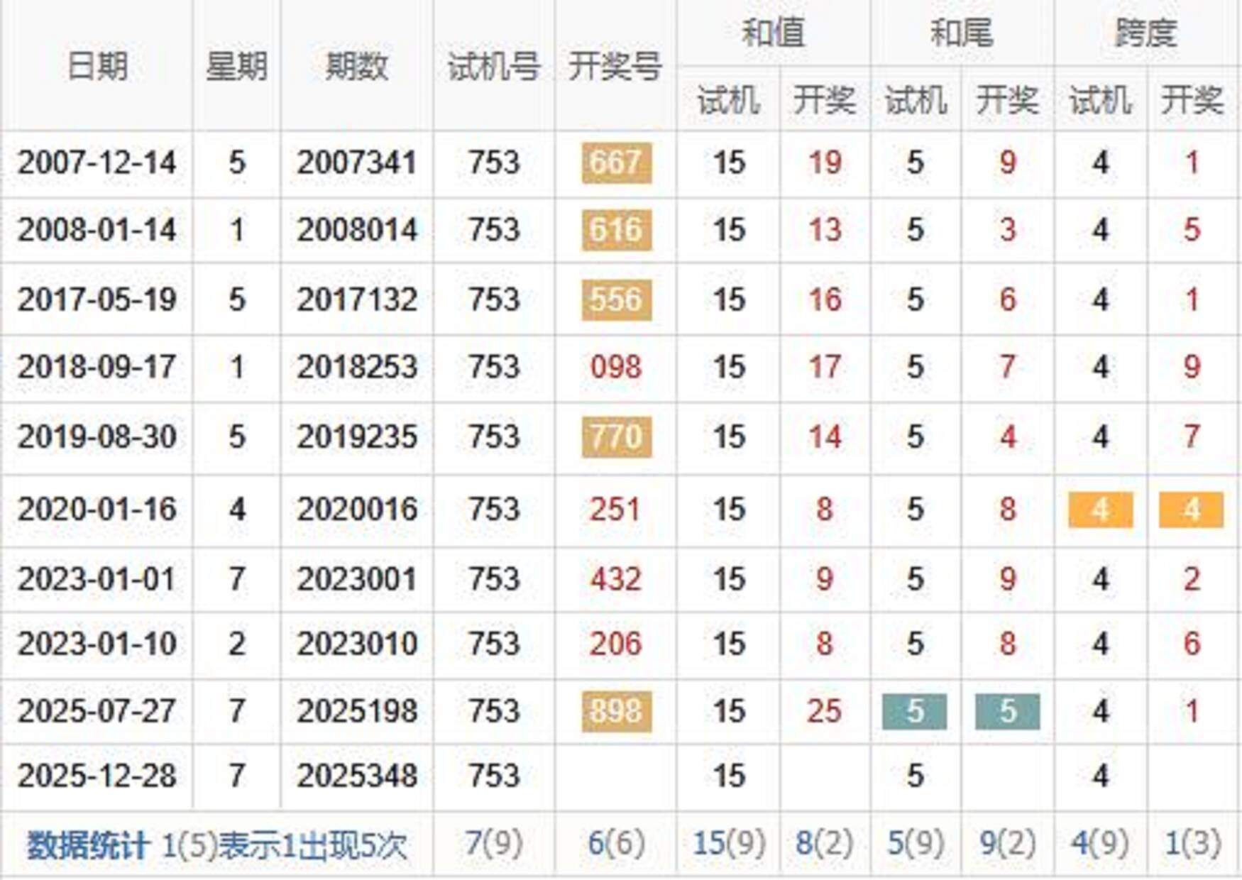 2025348期福彩3D 试 机 号 753 上期开奖号:192 1818部落 关注码:926 金码:6 对应码:134 348试机号形态 试机号:753 和尾:5 跨度:4 大小比:2:1 奇偶比:3:0 试机号走势图 金码历史统计 期数 试机号 关注码 金码 对应码 开奖号 出号 348 753 926 6 134 347 680 502 2 300 192 0 346 542 127 1 226 897 0 345 389 764 7 083 630 1 344 590 869 6 717 622 0 343 108 845 4 698 645 0 342 536 317 1 110 681 1 341 267 654 4 952 996 1 340 481 039 9 337 130 1 339 549 718 7 113 676 0 338 601 583 5 926 689 1 337 438 612 2 192 876 1 336 274 978 8 464 641 1 335 836 549 4 929 051 0 334 905 216 2 419 198 1 333 168 308 3 227 273 0 332 754 593 5 155 885 1 历史出现情况统计 348历史开奖号 2002348期 试机号 049 开奖号 270 和 9 348期牛小妹推荐 独胆:9 双胆:29 三胆:279 杀码:14 六码:235679 百位:26 十位:57 个位:39 直组精选: 253 259 273 279 653 659 673 679 单挑:279 更多精选内容: