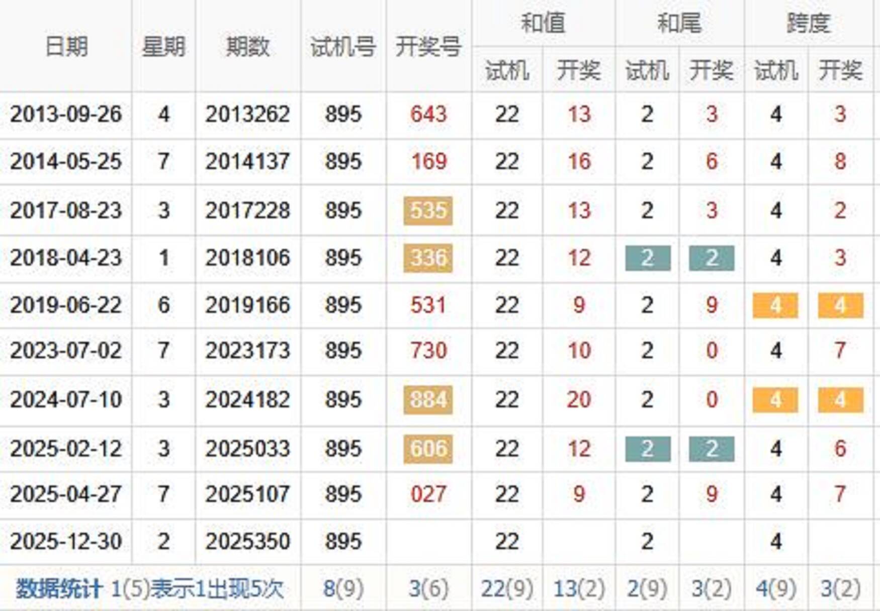 2007350期 试机号 652 开奖号 889 和 25