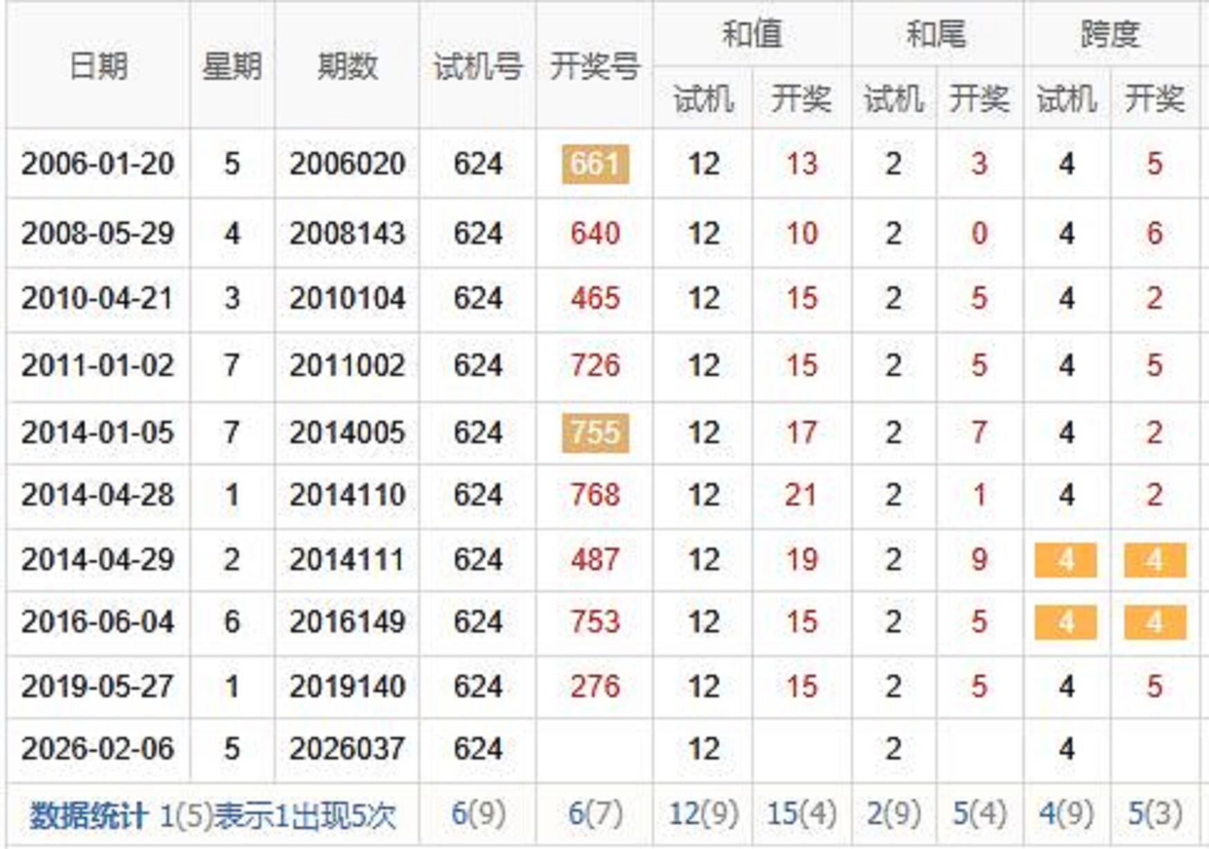 2026037期福彩3D 试 机 号 624 上期开奖号:762 1818部落 关注码:810 金码:0 对应码:331 037试机号形态 试机号:624 和尾:2 跨度:4 大小比:1:2 奇偶比:0:3 试机号走势图 金码历史统计 期数 试机号 关注码 金码 对应码 开奖号 出号 037 624 810 810 331 036 851 932 3 101 762 0 035 930 164 1 872 213 1 034 687 246 2 636 052 0 033 992 397 7 578 119 1 032 114 836 3 123 452 1 031 945 371 1 899 142 1 030 673 216 2 388 134 1 029 408 572 5 114 003 1 028 393 541 1 126 270 0 027 262 482 4 545 126 2 026 519 506 5 384 099 1 025 274 302 0 737 029 1 024 368 617 1 390 911 0 023 192 836 3 552 784 0 022 657 392 9 288 678 2 历史出现情况统计 037历史开奖号 2002037期 试机号 428 开奖号 706 和 13 037期牛小妹推荐 独胆:9 双胆:59 三胆:459 杀码:13 六码:024569 百位:24 十位:05 个位:69 直组精选: 206 209 256 259 406 409 456 459 单挑:459 更多精选内容: