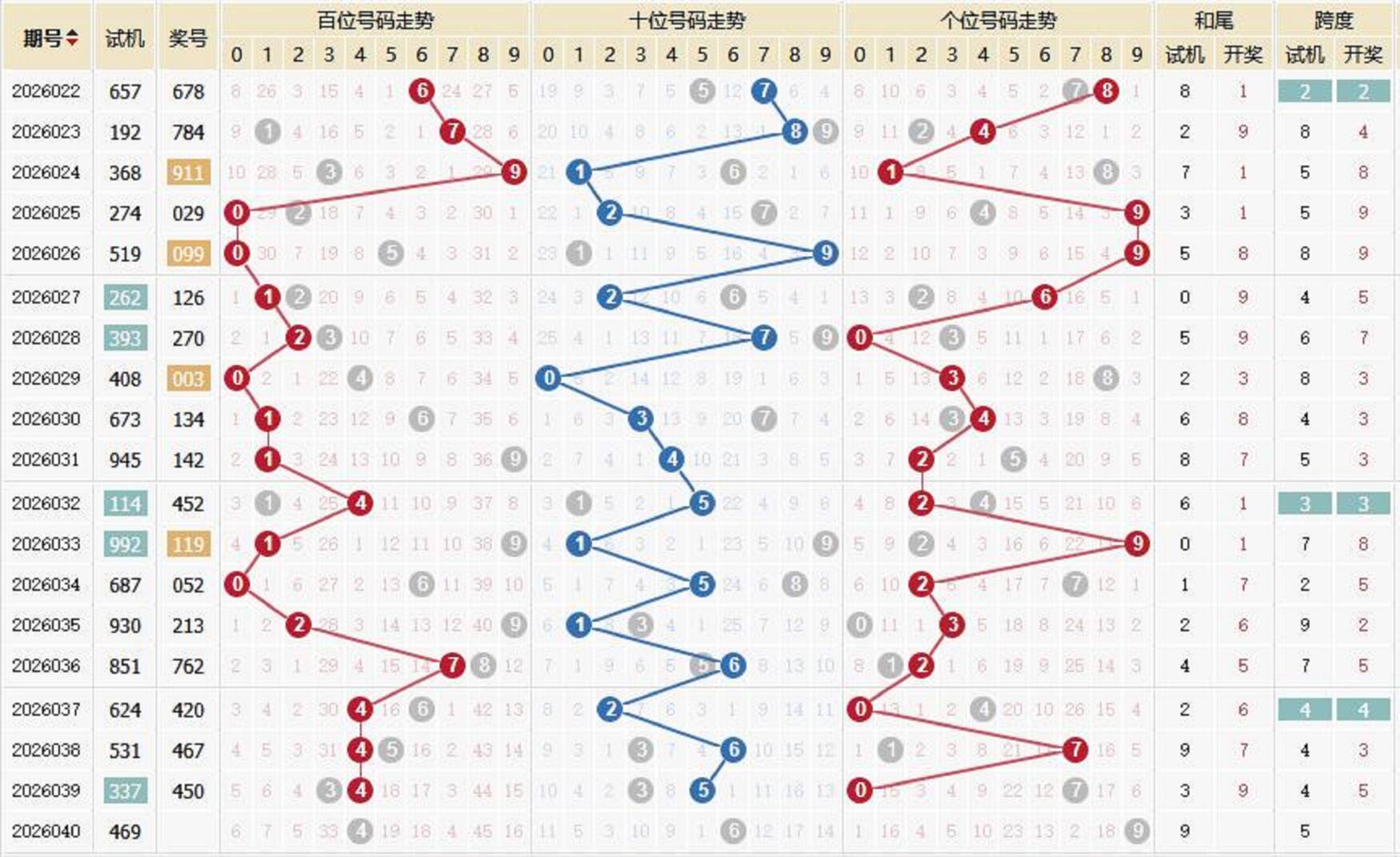 2026040期福彩3D 试 机 号 469 上期开奖号:467 1818部落 关注码:298 金码:8 对应码:232 040试机号形态 试机号:469 和尾:9 跨度:5 大小比:2:1 奇偶比:1:2 试机号走势图 金码历史统计 期数 试机号 关注码 金码 对应码 开奖号 出号 040 469 298 8 232 039 337 386 6 912 450 0 038 531 672 6 746 467 0 037 624 810 0 331 420 2 036 851 932 3 101 762 0 035 930 164 1 872 213 1 034 687 246 2 636 052 0 033 992 397 7 578 119 1 032 114 836 3 123 452 1 031 945 371 1 899 142 1 030 673 216 2 388 134 1 029 408 572 5 114 003 1 028 393 541 1 126 270 0 027 262 482 4 545 126 2 026 519 506 5 384 099 1 025 274 302 0 737 029 1 024 368 617 1 390 911 0 023 192 836 3 552 784 0 022 657 392 9 288 678 2 历史出现情况统计 040历史开奖号 2002040期 试机号 740 开奖号 305 和 8 040期牛小妹推荐 独胆:2 双胆:24 三胆:248 杀码:13 六码:024568 百位:02 十位:46 个位:58 直组精选: 045 048 065 068 245 248 265 268 单挑:268 更多精选内容: