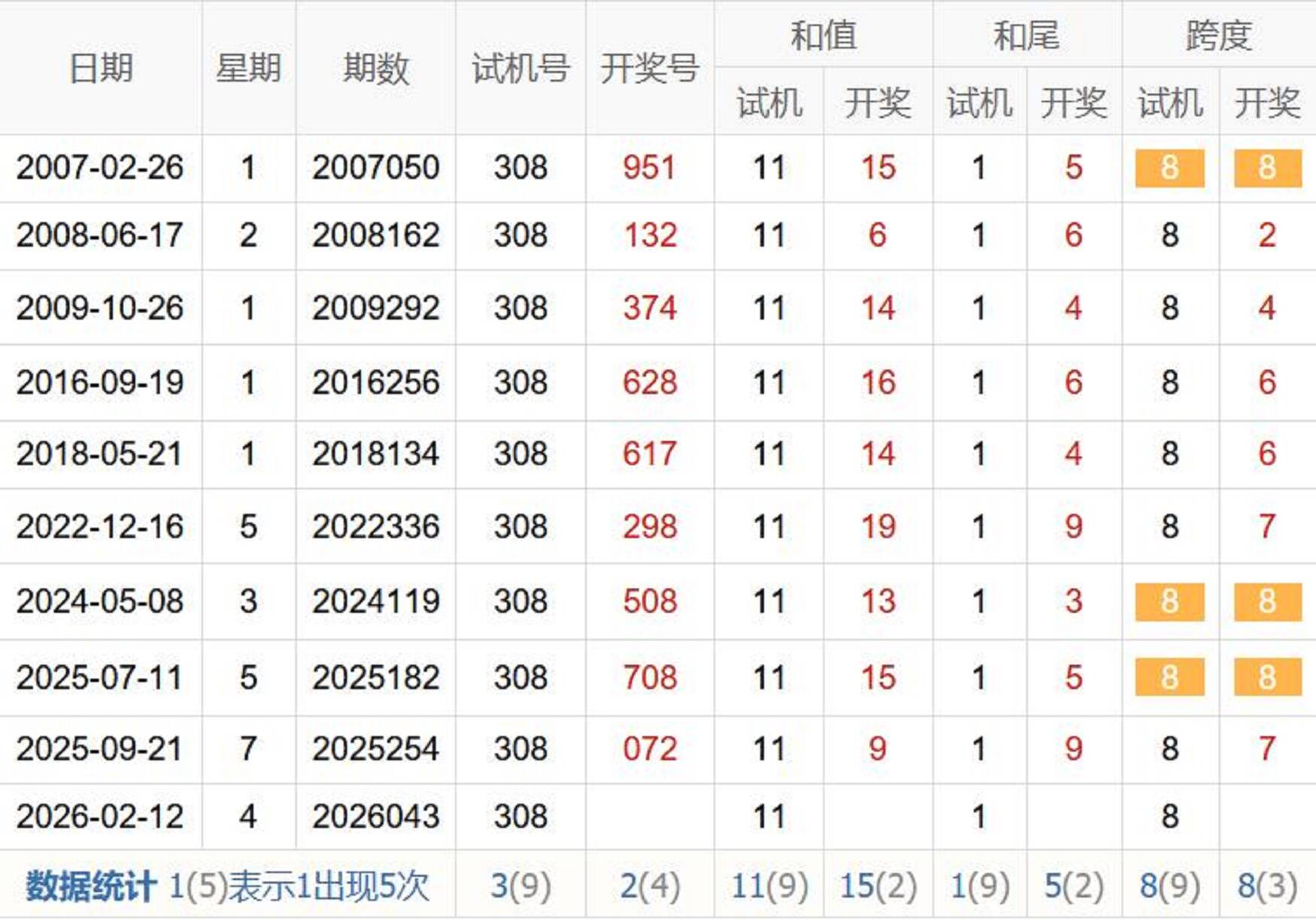 2008043期 试机号 044 开奖号 320 和 5