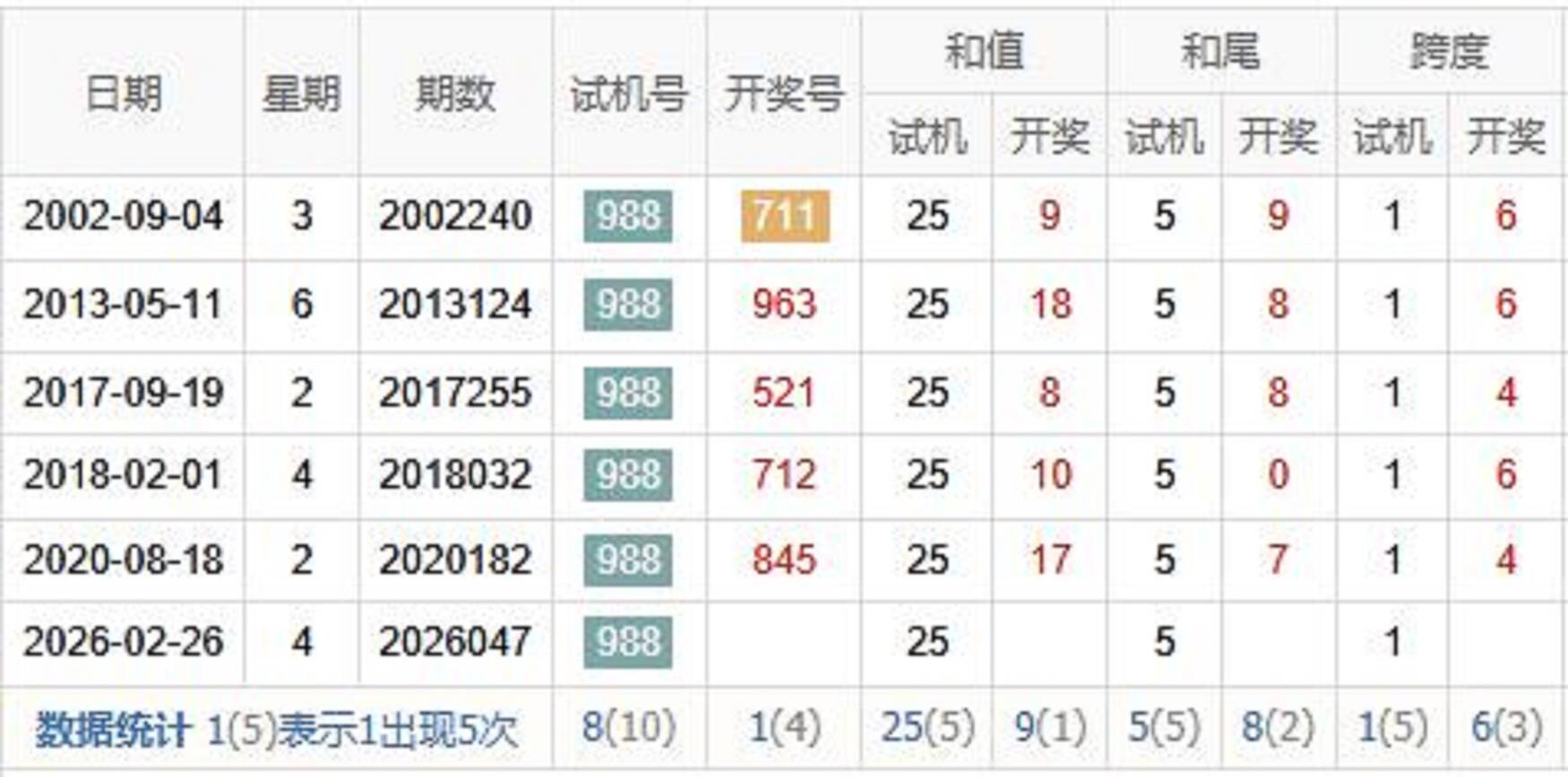 2022047期 试机号 845 开奖号 882 和 18