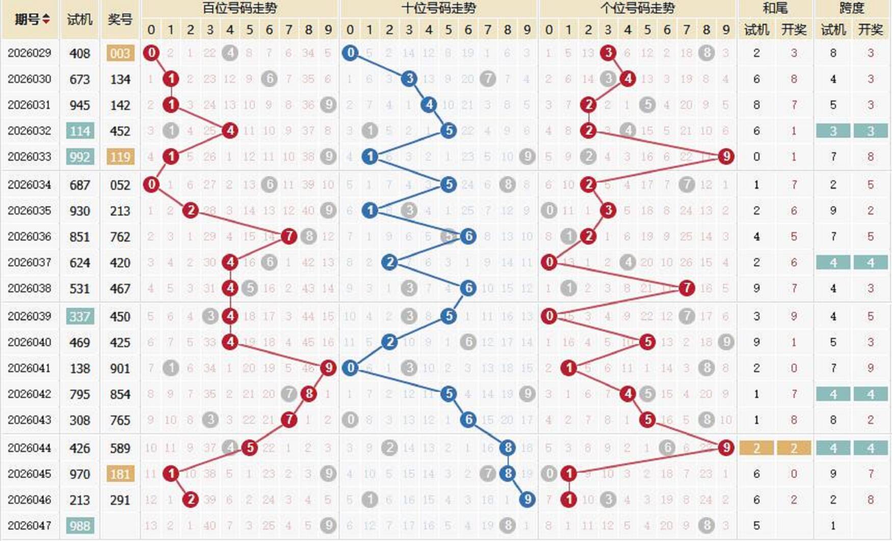 2026047期福彩3D 试 机 号 988 上期开奖号:291 1818部落 关注码:318 金码:1 对应码:375 046试机号形态 试机号:988 和尾:5 跨度:1 大小比:3:0 奇偶比:1:2 试机号走势图 金码历史统计 期数 试机号 关注码 金码 对应码 开奖号 出号 047 988 318 1 375 046 213 762 6 905 291 2 045 970 809 9 142 181 0 044 426 809 9 066 589 0 043 308 215 1 515 765 0 042 795 420 0 437 854 1 041 138 953 3 280 901 1 040 469 298 8 232 425 1 039 337 386 6 912 450 0 038 531 672 6 746 467 0 037 624 810 0 331 420 2 036 851 932 3 101 762 0 035 930 164 1 872 213 1 034 687 246 2 636 052 0 033 992 397 7 578 119 1 032 114 836 3 123 452 1 031 945 371 1 899 142 1 030 673 216 2 388 134 1 029 408 572 5 114 003 1 历史出现情况统计 047历史开奖号 2002047期 试机号 031 开奖号 118 和 10 047期牛小妹推荐 独胆:8 双胆:78 三胆:378 杀码:24 六码:013789 百位:13 十位:07 个位:89 直组精选: 108 108 178 179 308 309 378 379 单挑:378 更多精选内容: