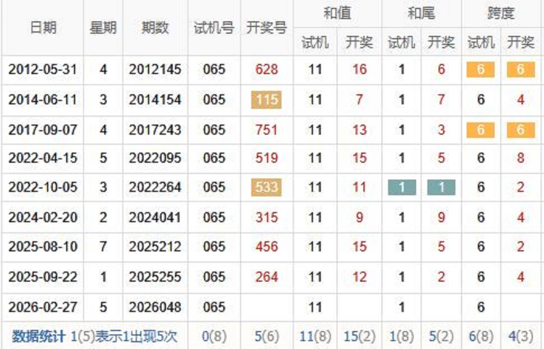 2019048期 试机号 580 开奖号 326 和 11