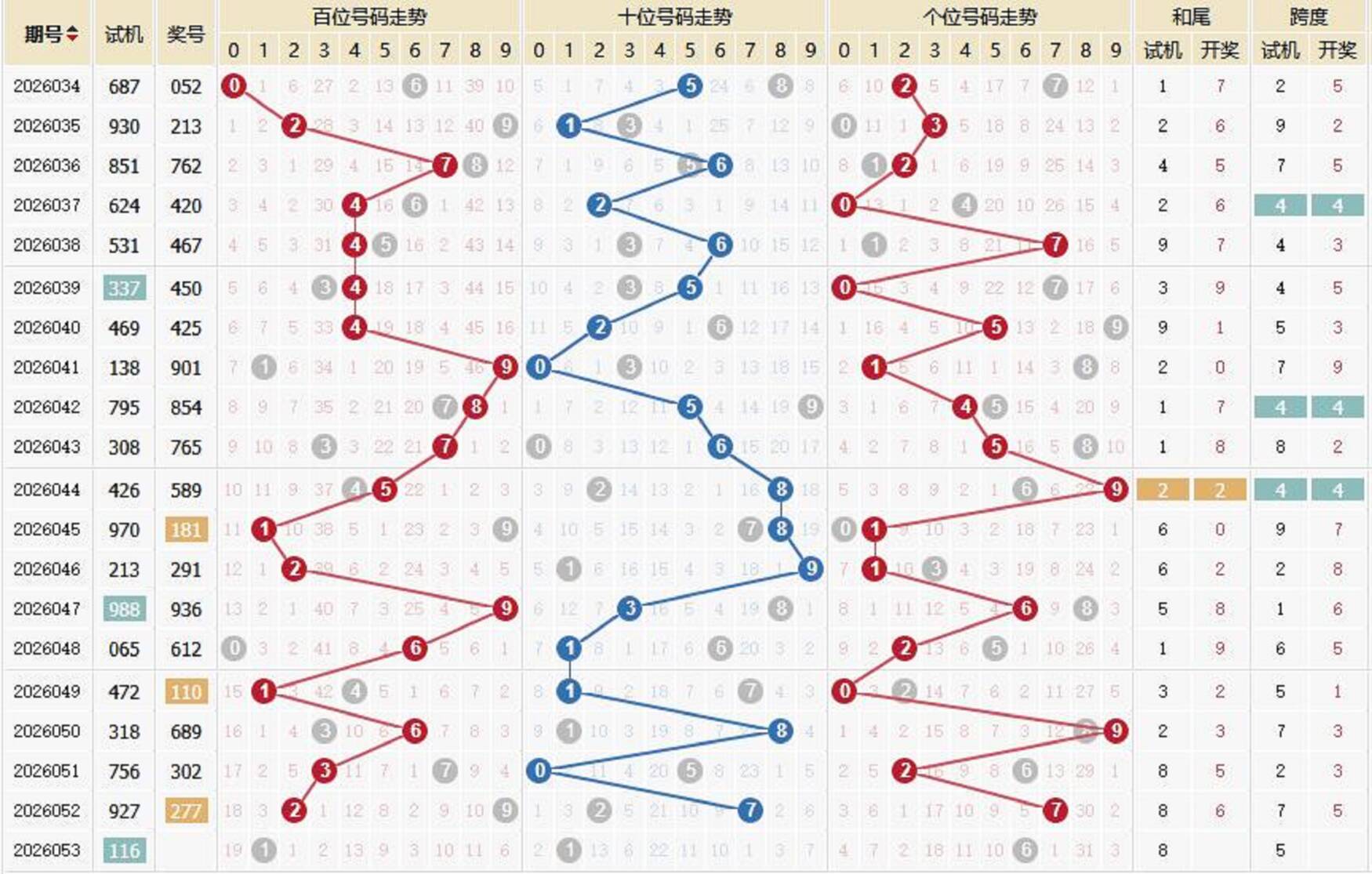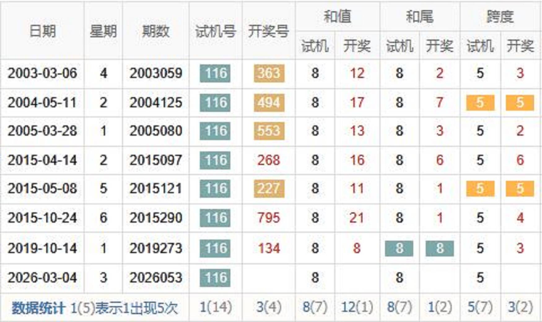 2003053期 试机号 262 开奖号 580 和 13
