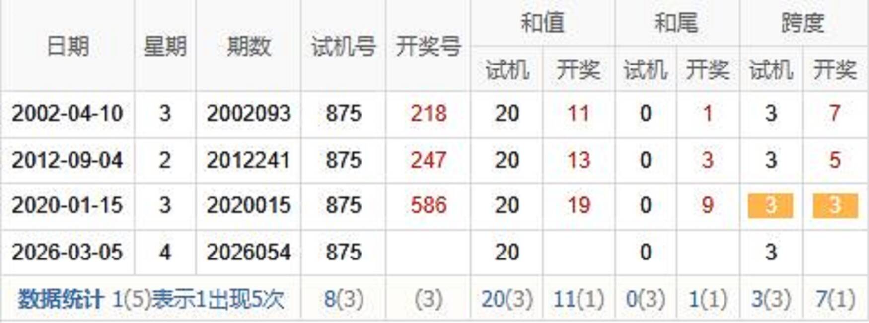 2025054期 试机号 712 开奖号 497 和 20